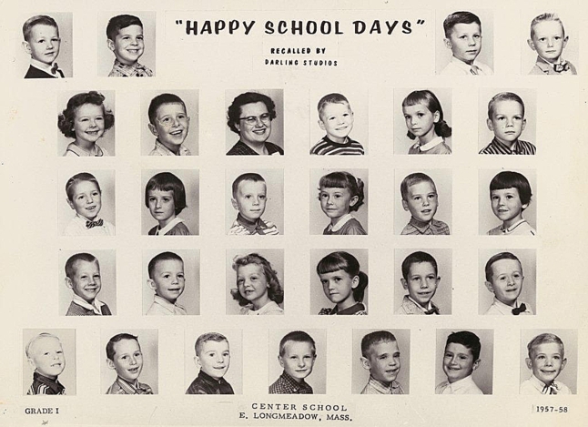 Some of us went to Center School on School Street for first and second grades. The school day was 9 a.m to 3 p.m. The first and second floors each had four classrooms. During first grade, the second floor had three second grade and one third grade classrooms, the final year for a third grade classroom in the school.