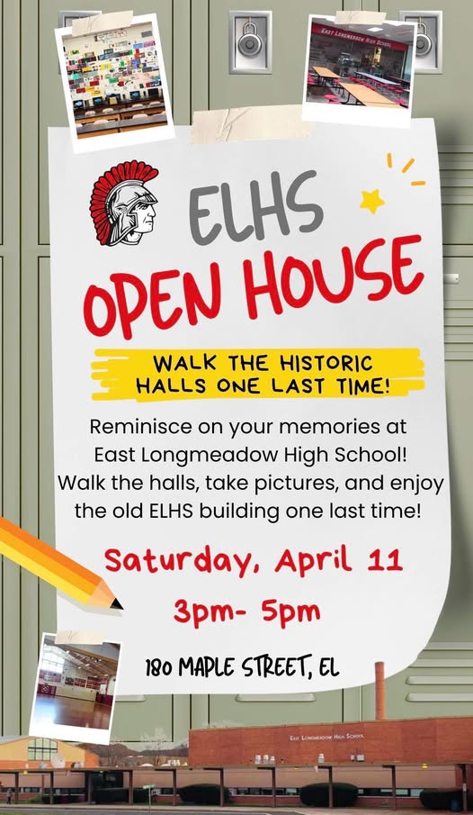 On Saturday, Apr. 21, current and former students, faculty, staff, and townspeople gathered at ELHS for a final open house for the current school. The new school is scheduled to open in September 2026. Click here, then scroll down to see many photos and videos.