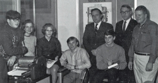 Student Bulletin "IT" members in Brian's junior year. Albert Keinath, Joan Hutchinson, Susan Regnier, Kenneth Behan, Mr. James Dowd (advisor), J. Glenn Reardon, Mr. Richard Freburg (advisor), Brian Falk.